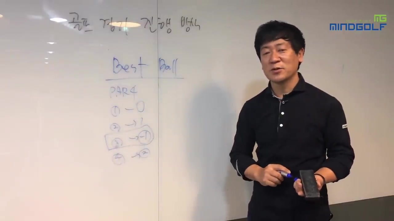 골프 대회에서 베스트 스코어를 내는 사람의 점수를 따라가는 경기방식이 일반적이에요.